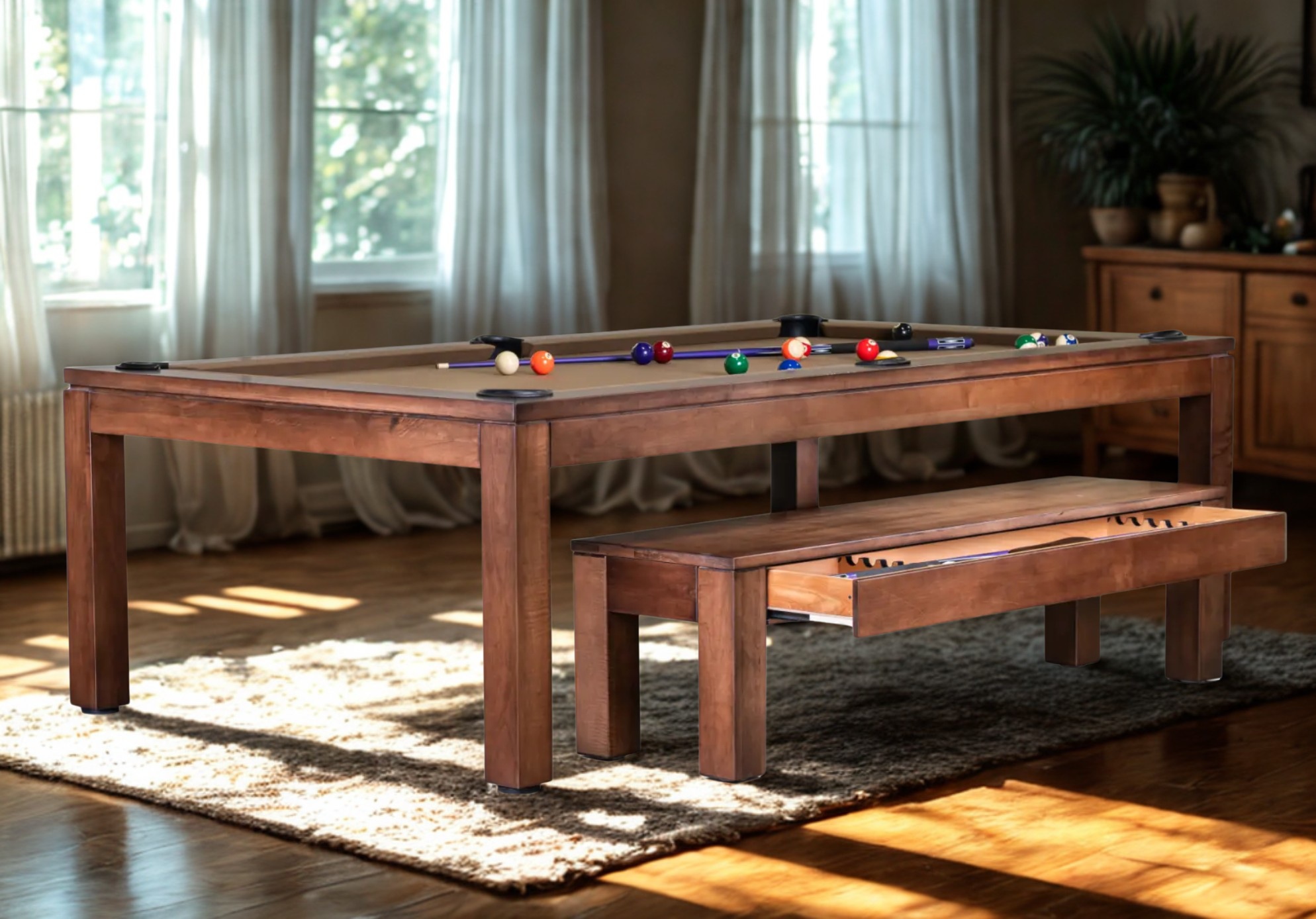 When it’s time to entertain, the Townhouse seamlessly converts from a championship-ready pool table to a stunning dining surface. With a variety of exquisite finishes and customizable options to match your décor, this pool table becomes the heart of your home, effortlessly adapting to any occasion. What’s even better? Every table includes a matching convertible top caddy. making it effortless to store when not in use.